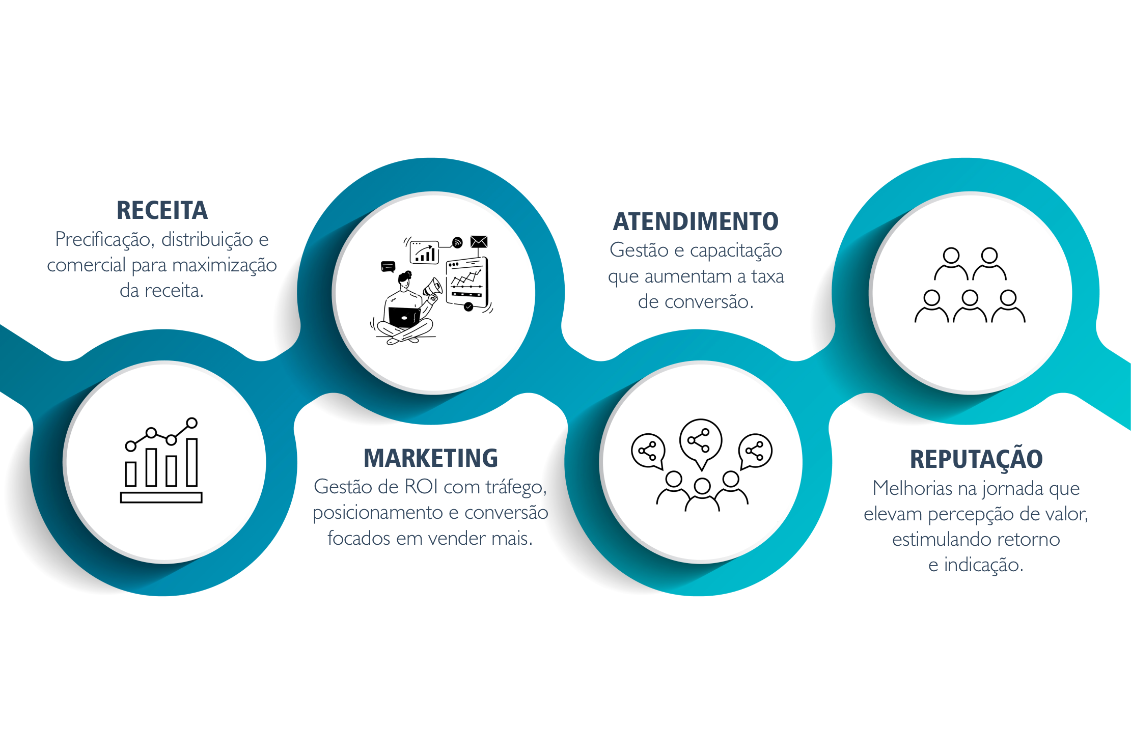 Receita não cresce só com preço. Sem estratégia de canais e leitura de demanda, tarifa vira tentativa. Preço errado destrói margem, mesmo com alta ocupação.